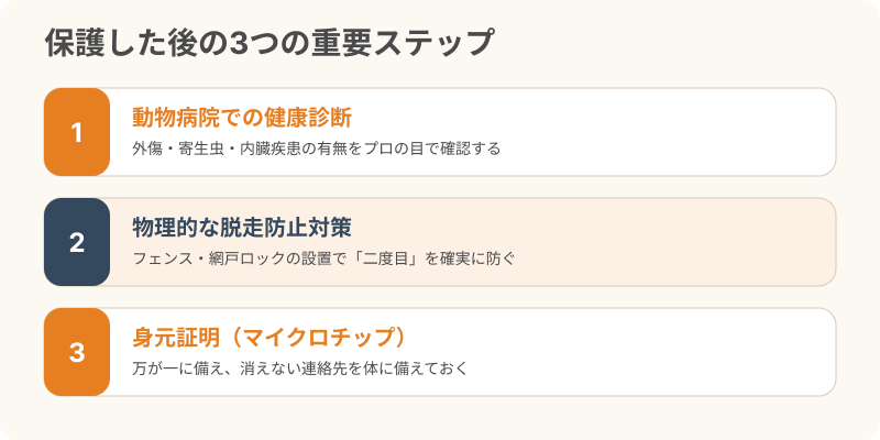 まずは動物病院へ!帰宅後の健康チェックと感染症・外傷の確認