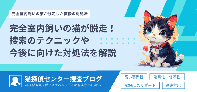 完全室内飼いの猫が脱走した際は、遠くへ行く前にどれだけ早く対処出来るかがポイントです。