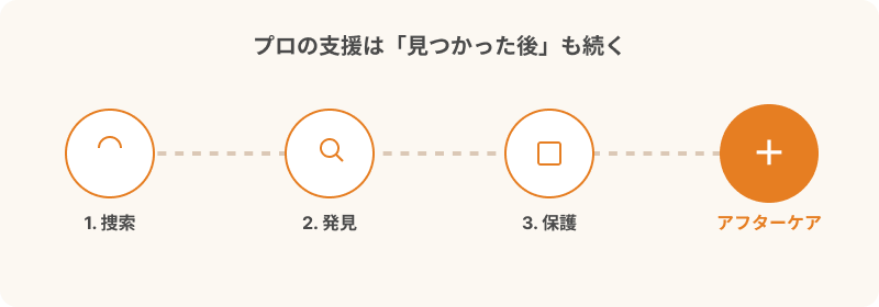 保護できる質を頼りにしたい、自身では難しい捜索をプロに任せたい、サポートもしてほしいと考えているなら早期着手が肝です。