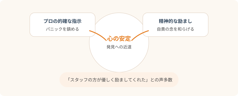 愛猫がいなくなった飼い主様は、強い自責の念や不安に駆られています。ニャン吉のレビューでは、「スタッフの方が優しく励ましてくれた」「パニックになっている時に的確な指示をくれた」という声が多く見られます。捜索技術だけでなく、精神的な支えとなってくれる点も大きな魅力です。