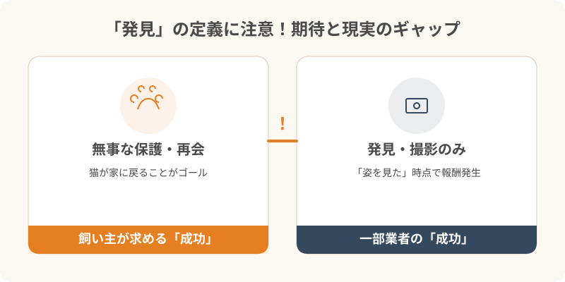 例えば、5メートル以内で猫を確認した、あるいは写真に収めただけで「発見」と定義するケースも見受けられます。