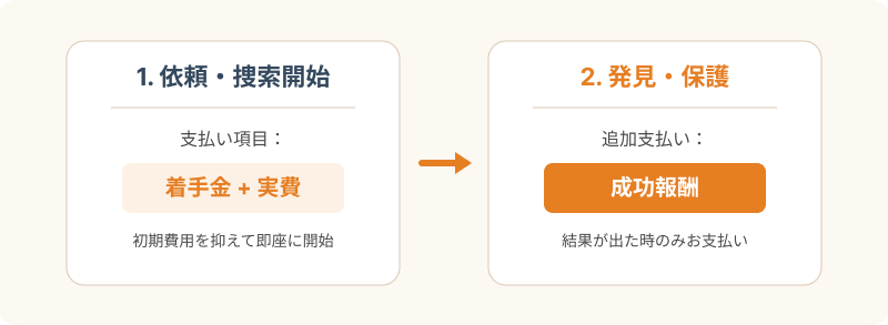 また、成功報酬とは別に、契約時や捜索開始時に「着手金」として数万円を支払う形式の契約も存在します。