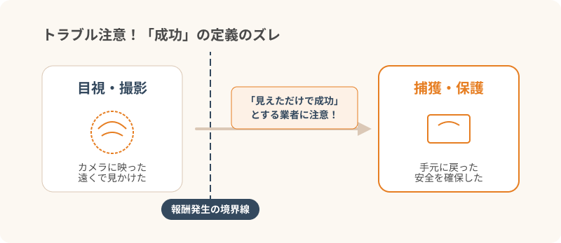 一方で飼い主様は、ペットを無事に捕まえて手元に連れ戻す「保護」までを期待していることが多いため、認識の相違が大きなトラブルの元になり得ます。